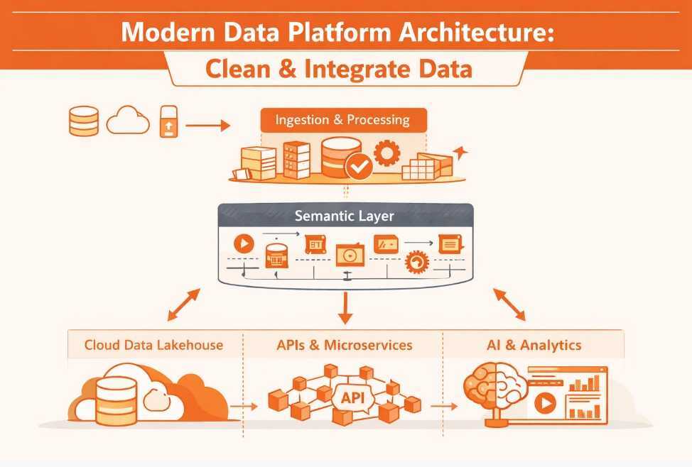 Learn how a modern data platform architecture solves data quality and integrations, and adopts an API‑first cloud‑native design to deliver AI‑ready insights